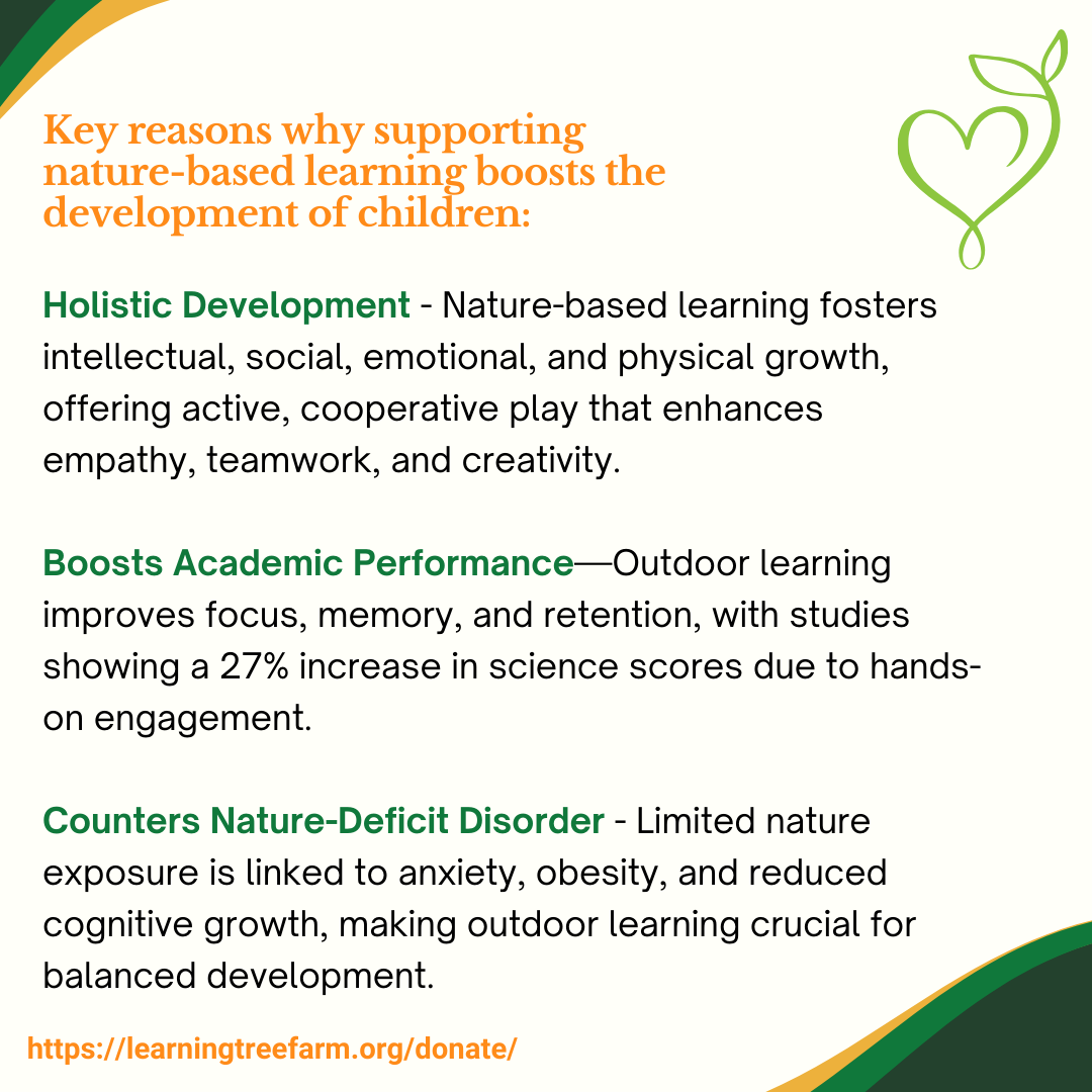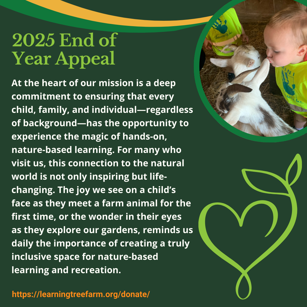 Learning Tree Farm is a traditional, working farm that engages people in hands-on, nature-based education. We host and educate school children, homeschool groups, parent groups, gardening clubs, families, and community members of all ages throughout the year with a variety of events and outdoor learning experiences.